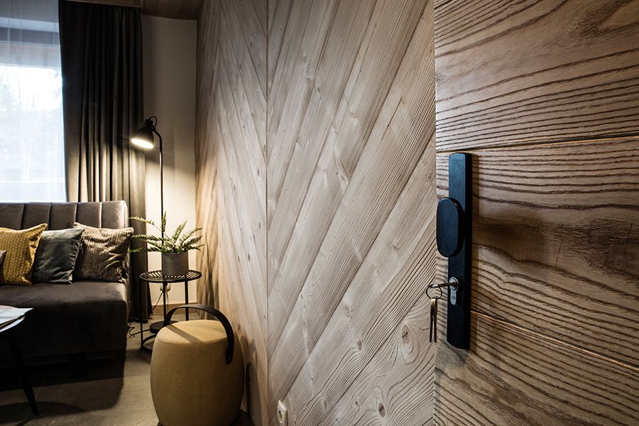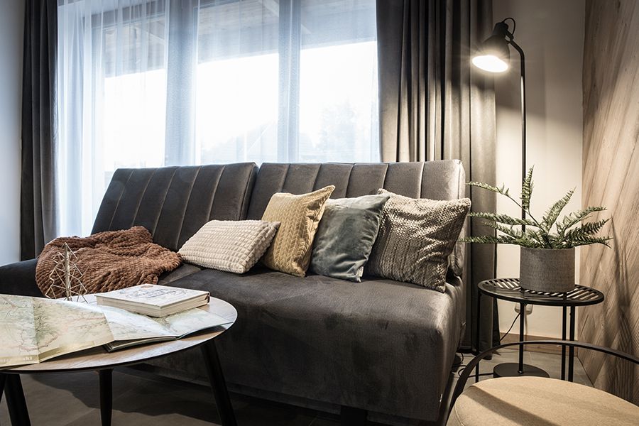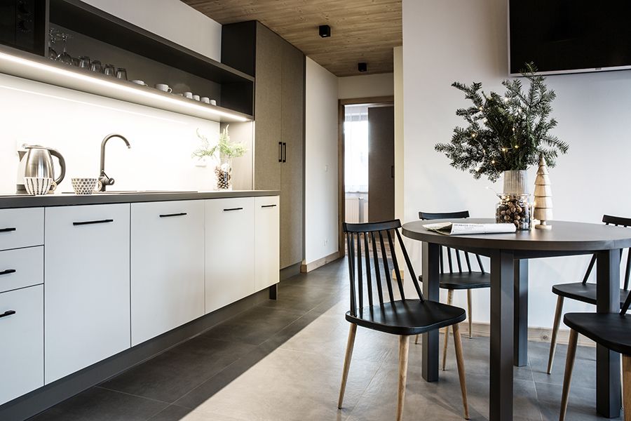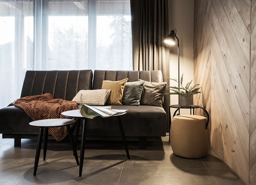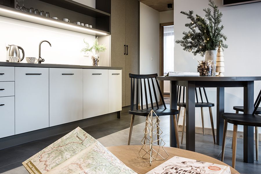Apartament dla max. 5 osób, kompletnie i nowocześnie wyposażony z dwoma sypialniami w stylu regionalnym . Mieści się w Willi Kozińcówka zlokalizowanej w dzielnicy Zakopanego Bystre-Koziniec w odległości ok. 1800m od górnej części ulicy Krupówki. Architektura budynku swoim charakterem nawiązuje do stylu zakopiańskiego i jednocześnie w nowoczesny sposób łączy elementy drewna, kamienia i stali. W skład apartamentu wchodzi: salon z aneksem kuchennym i rozkładaną kanapą, dwie sypialnie , łazienka z kabiną prysznicową, balkon.